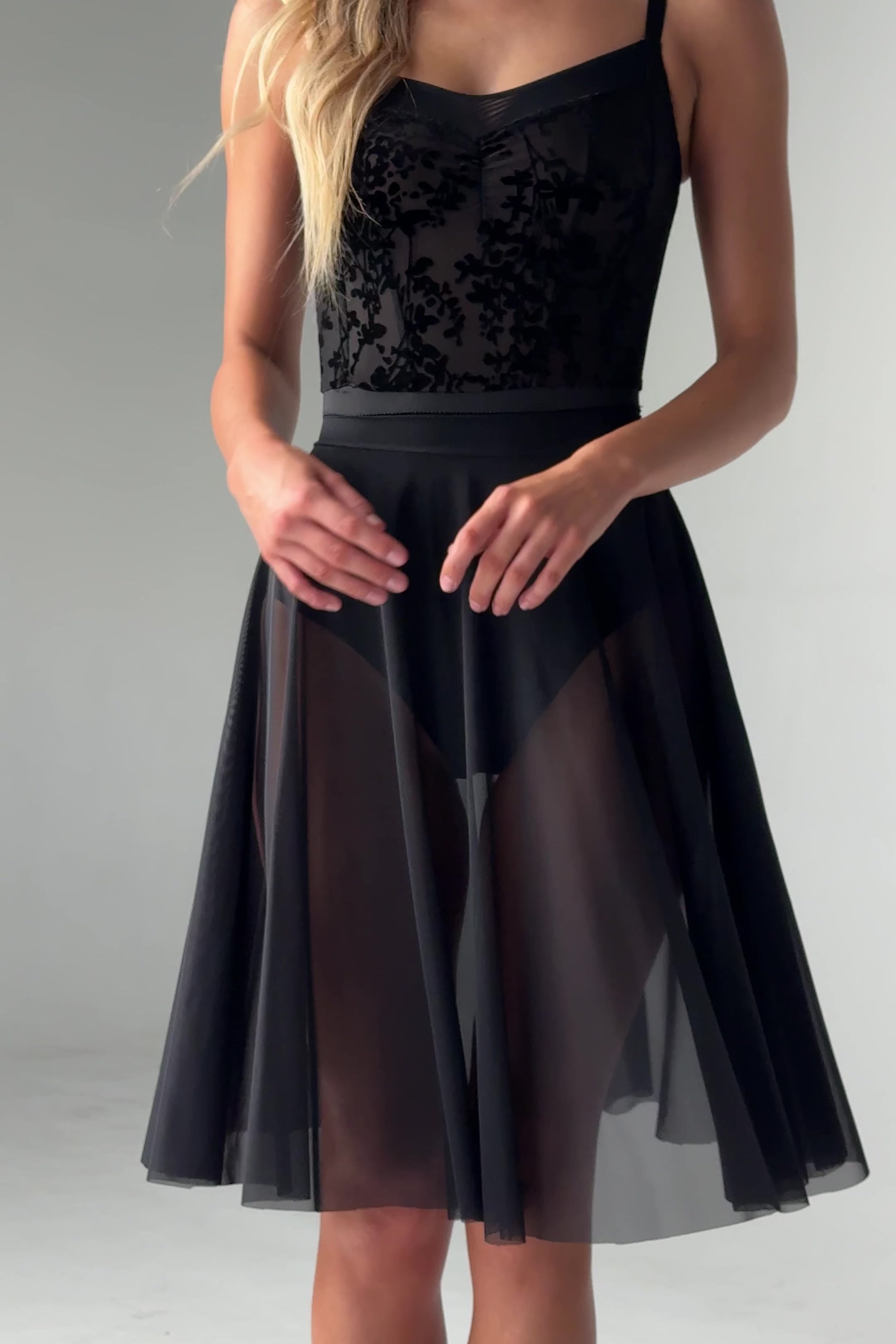 A full-circle, pull-on skirt with a floaty, ethereal feel - perfect for rehearsal or studio time. Crafted from SUPRABLIME®️, our featherlight Italian-made stretch mesh, JULIETA features an elegant long line and a smooth waistband that sits comfortably and enhances your natural silhouette.