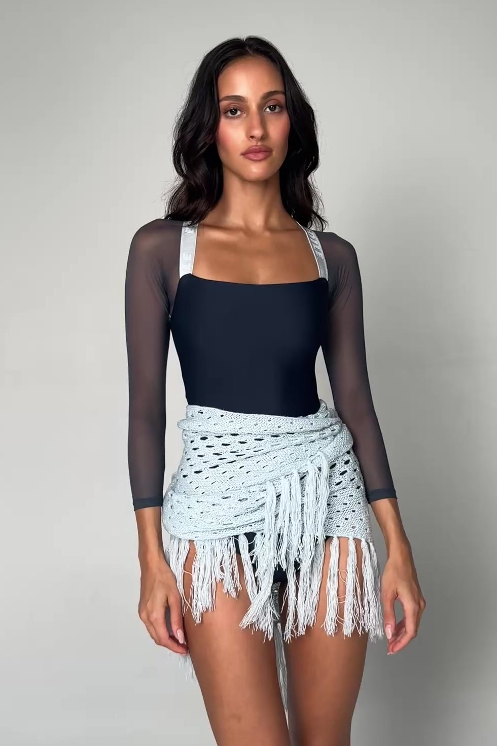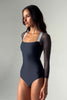 A dramatic square cut neckline and signature BODILE details, including a gold butterfly clasp at the back of the neck, light-as-air SUPRABLIME®️ mesh inserts and sleeves and featuring our cutting edge LEOPREME®️ fabric and BODILE branded elastic.