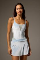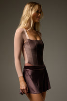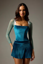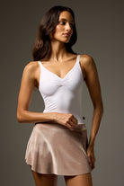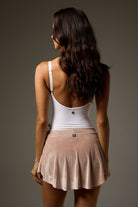 Short SAB style pull-on skirt is slim cut with a curved hem that is shorter at the sides to elongate the leg line. Made from luxuriously soft velvet to coordinate with LEOPREME®️ and LEOFORME®️ BODILE fabrics.